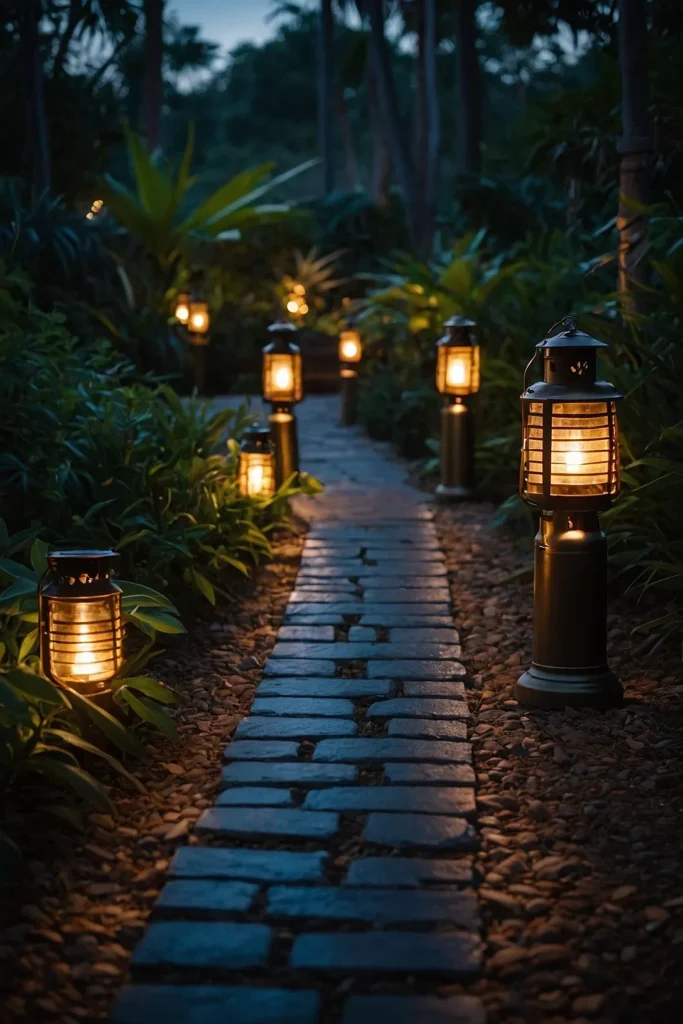 Position traditional hurricane lanterns with LED candles along your pathway for timeless, romantic appeal.
