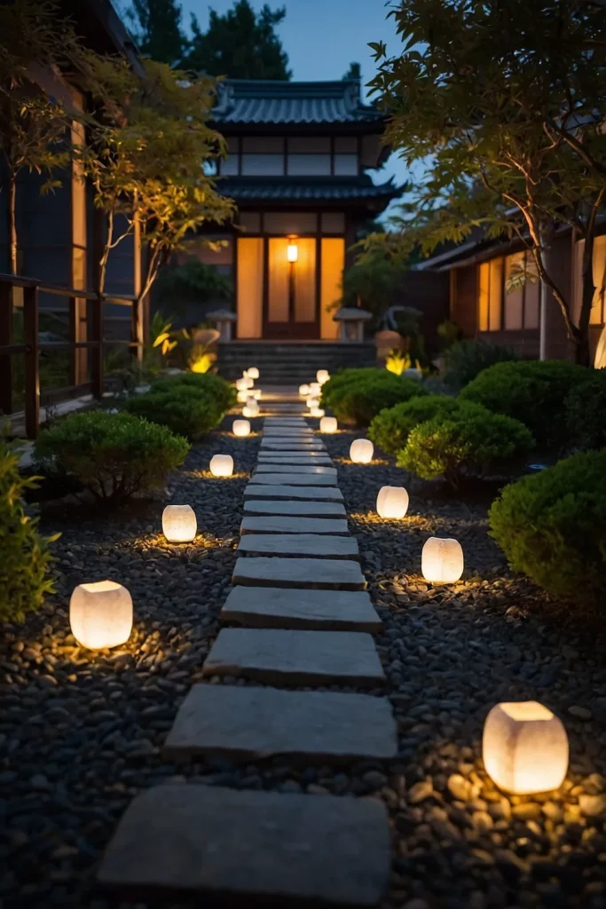 Install traditional Japanese stone lanterns at key points along your garden pathways.
