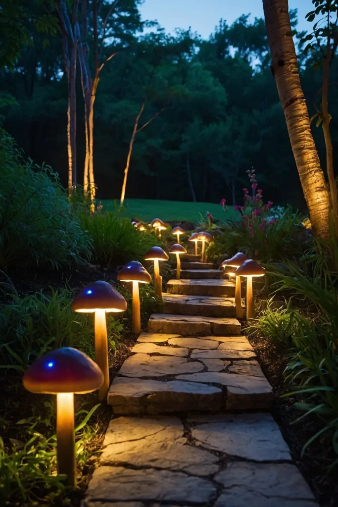 Position mushroom-style path lights along your walkways for gentle, downward-focused illumination.