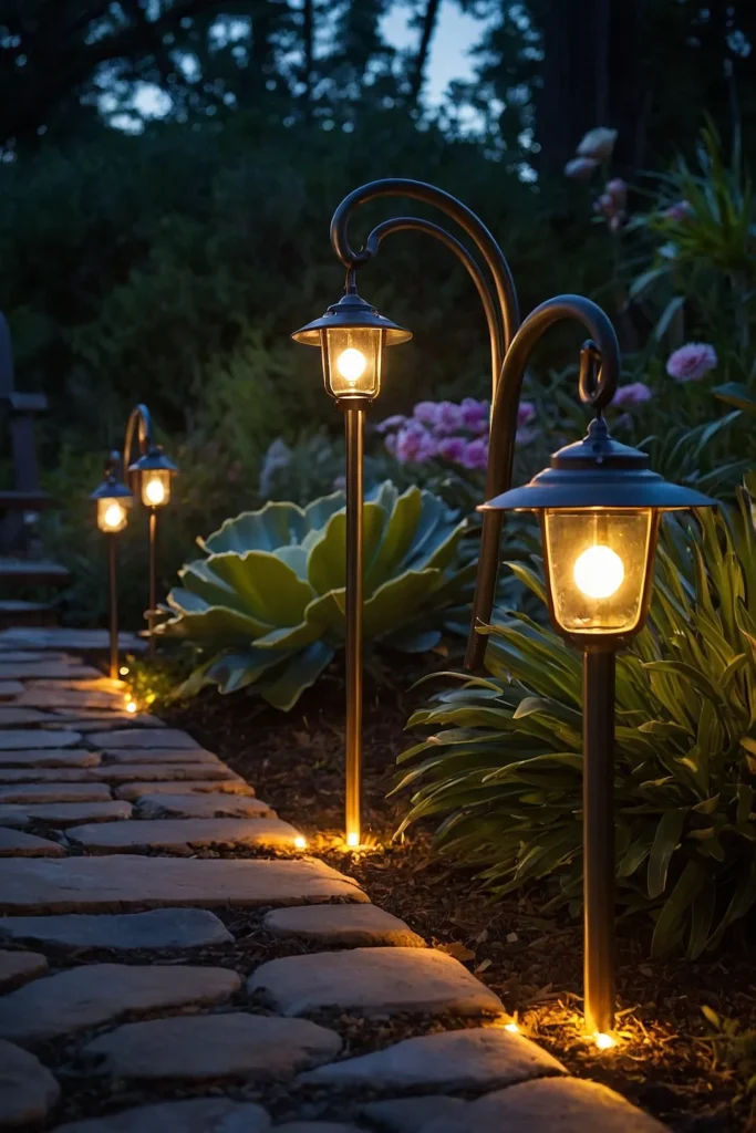 Position lights to highlight special plantings or pathway features while providing functional illumination.