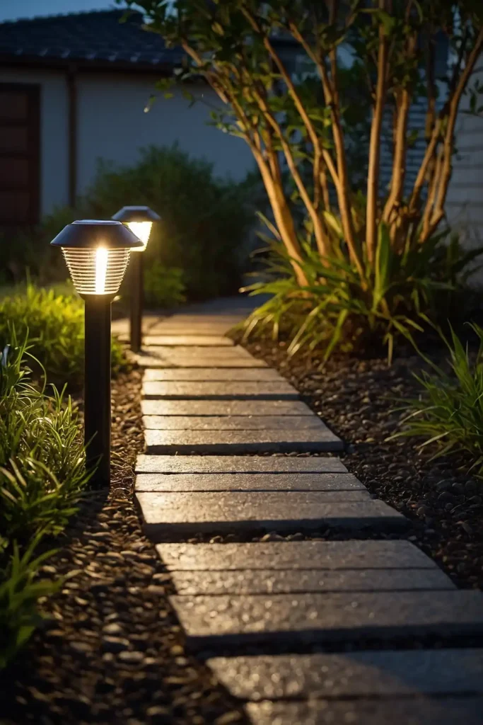 Line your walkway with solar-powered stake lights that charge during the day and automatically illuminate at dusk.