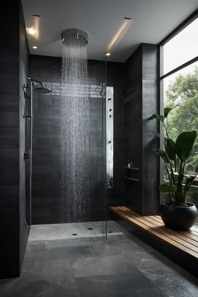 The greenery adds visual interest, improves air quality, and creates a rejuvenating, nature-inspired shower experience.